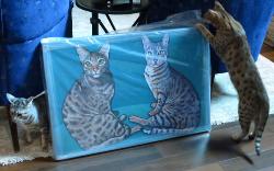 Quetsy and Schrody Amazing Occicats living in Rancho Santa Fe, CA 24x36, March 2015