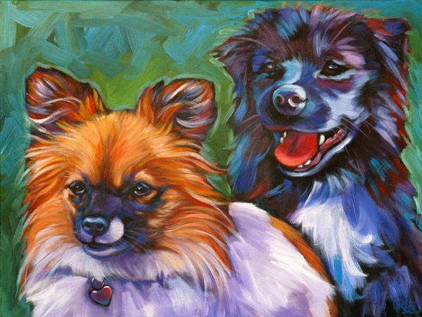 | Portrait of Josie & Gizmo Inseparable Duo living in Palo Alto, CA 18x24", acrylic on canvas, November 2011 |