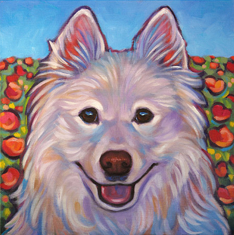 | Portrait of Simool Treasured Samoyed living in Phoenix, AZ 14x14", acrylic on canvas, November 2011 |