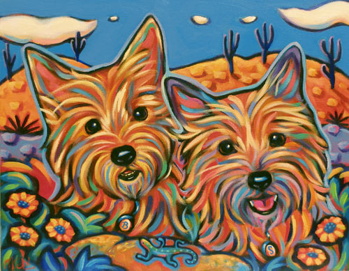 Buster and Sheba (and their little lizard friend!) 14x18" Oct. 2008