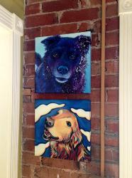 | Portrait of Baxter, Phoebe and Josie Baxter & Phoebe, living in Morro Bay; Josie in fond memory 24x36", Acrylic on canvas, June 2013 |