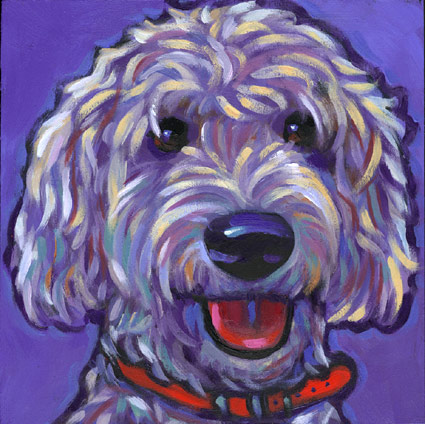 SADIE gregarious Golden Doodle from Alberta, Canada 8x8" Acrylic on Cradled Birch, June 2010